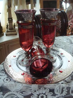 | Copos e Prato em Cristal e Prata |